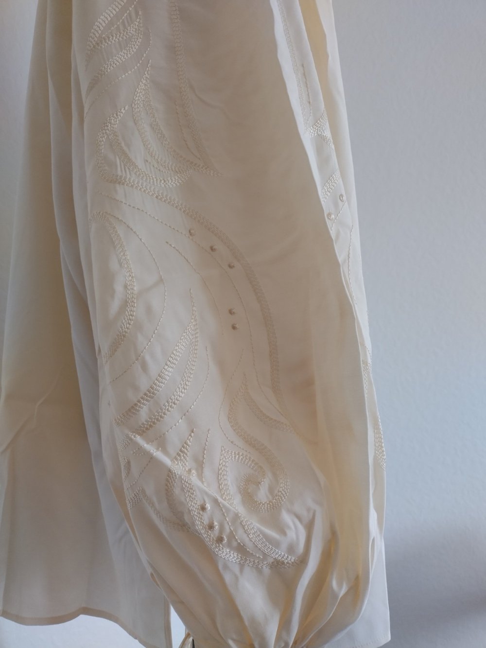 Relaxed Fit Tunika mit Ballonärmeln in Beige. Gr. XL
