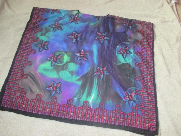 Aquarell * Blumen * Blüten * Glitzer * Strass- Kristalle * Seiden- Satin * Strand * Überwurf * Poncho * Tunika "Step In Style" Gr. 34- 46/ XS- XL * One Size * lila violett purple * pink * bunt *