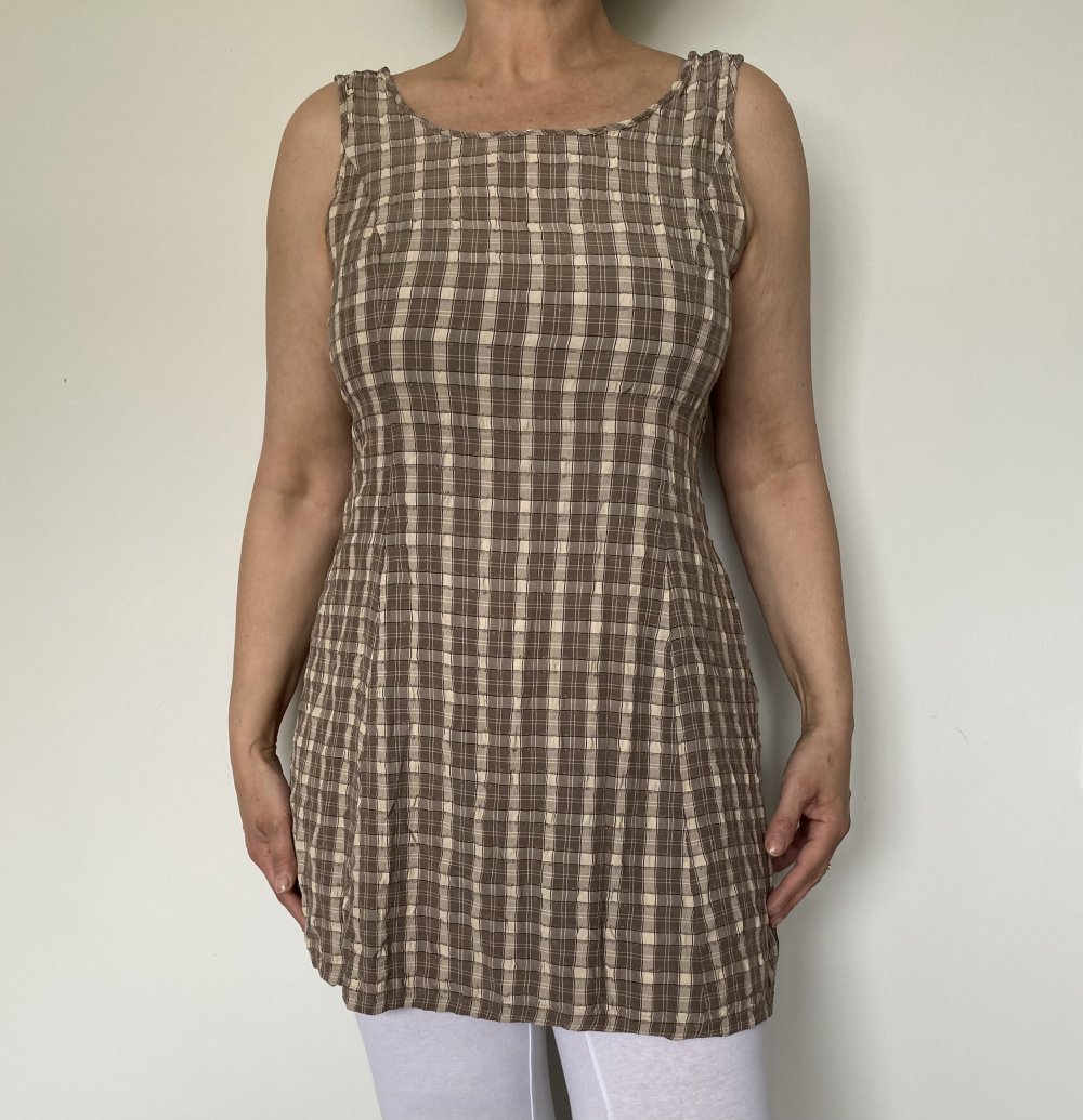 ärmellos in braun/ beige kariertem Muster