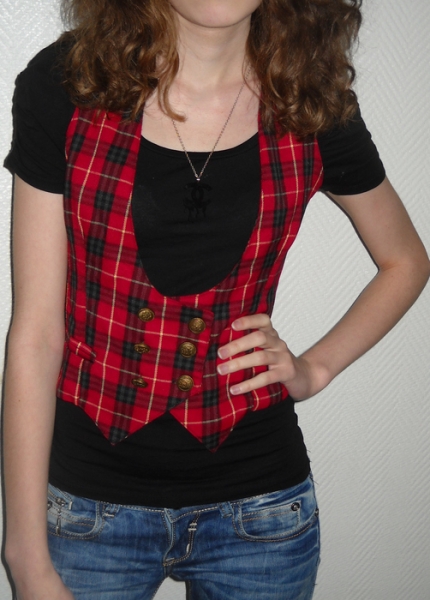 Weste Jacke Schotten Karo Nova Check rot kariert Military 32 34 36 XS S M doppelte Knopfleiste