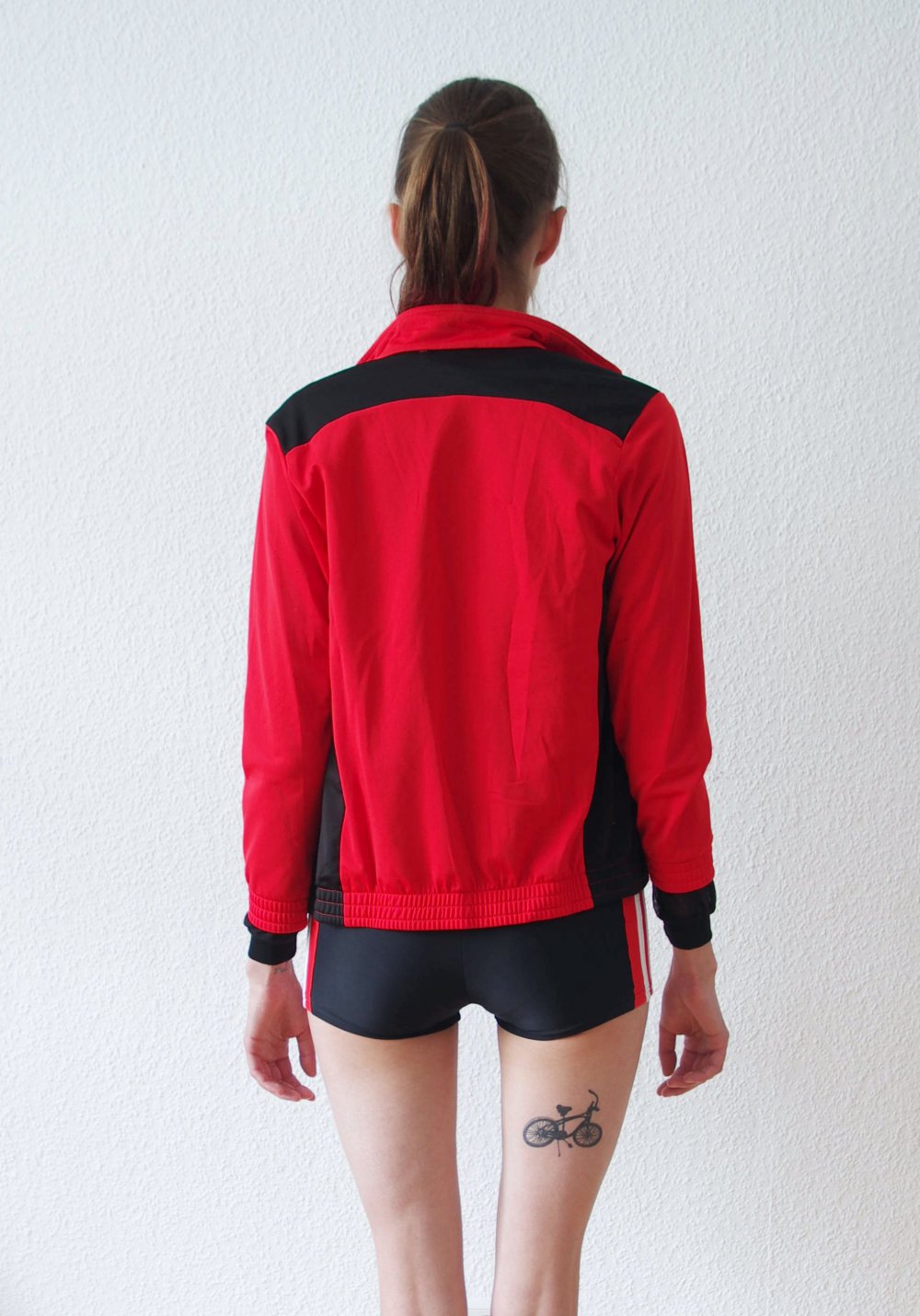 Eigenschaften: großartige Trainingsjacke/ Tracksuit Zipper im Retro-Look mit seitlichen Einschubtaschen, vorn mit aufgesticktem Logo, super für Sport, Festivals, Party, Raves, Alltag