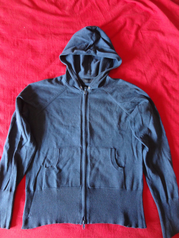 Kapuzenjacke Strickcardigan Manteljacke Kimonojacke Kapuzenshirt Weste Melange dunkelblau Italy Größe L Cardigan offen