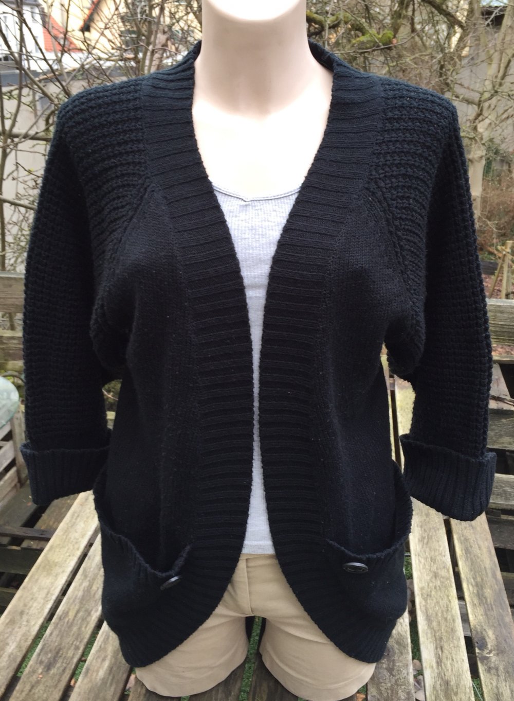 Schwarze Strickjacke mit offener Front von Vero Moda in Größe M.