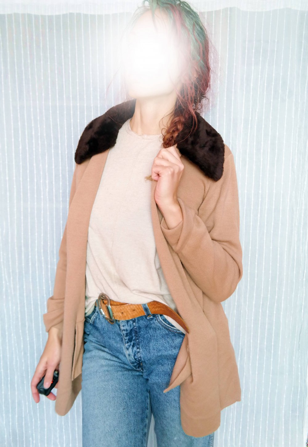 Madeleine Twinset Kostüm Wolle Schurwolle Fellkragen Teddyfell Cardigan Strickjacke braun S M