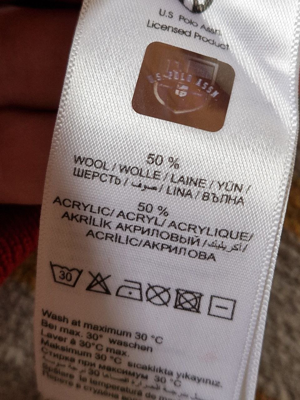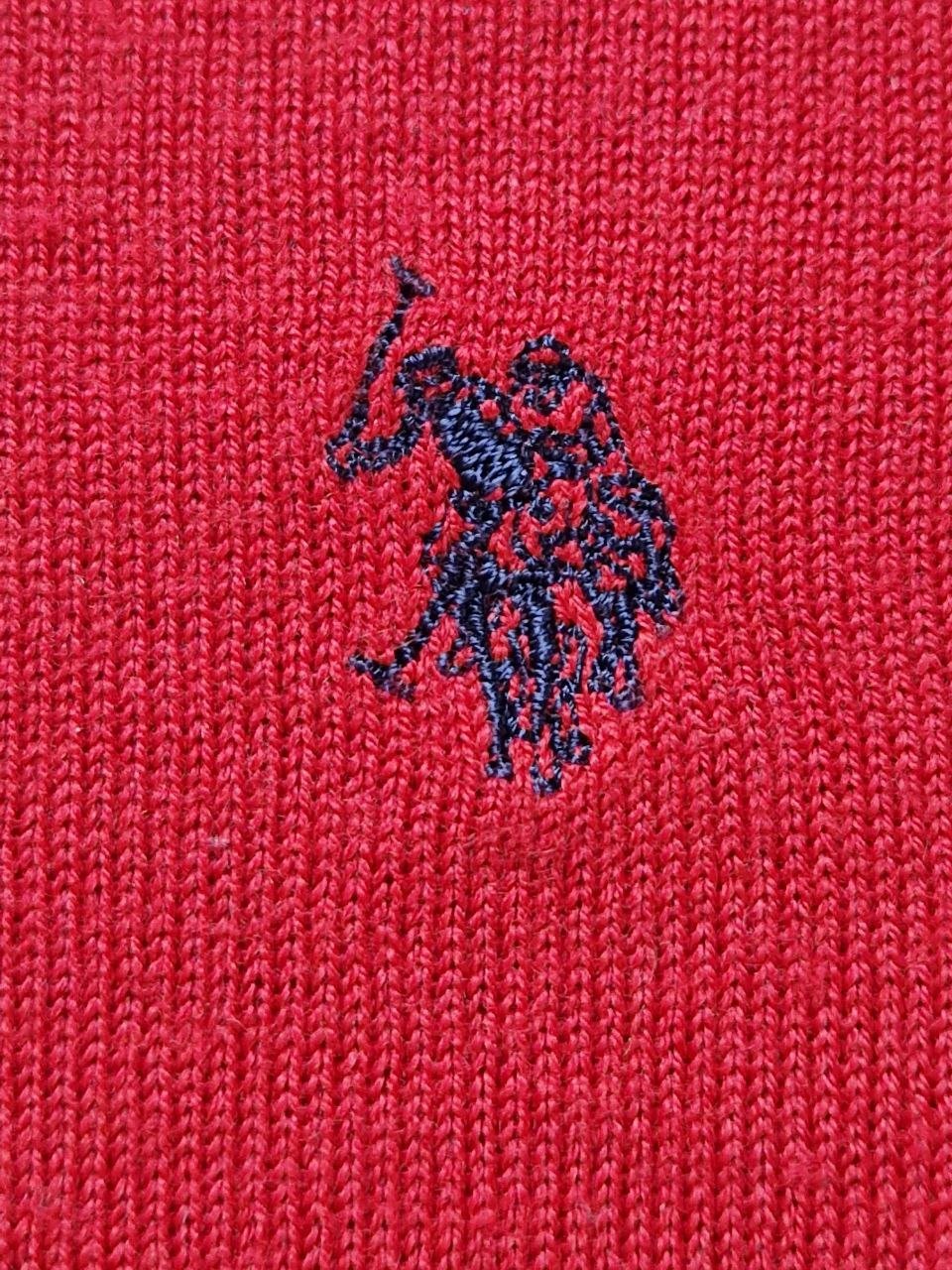U.S. Polo Assn. Schöner roter Herrenpullover. 50%Wolle + 50% Acryl. Größe L.