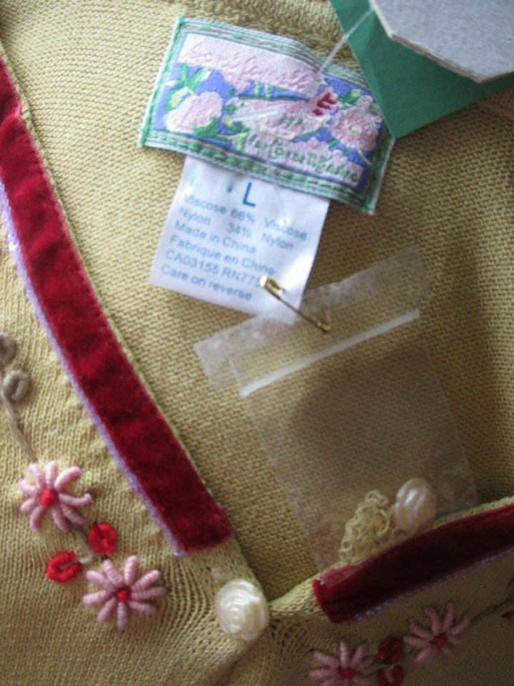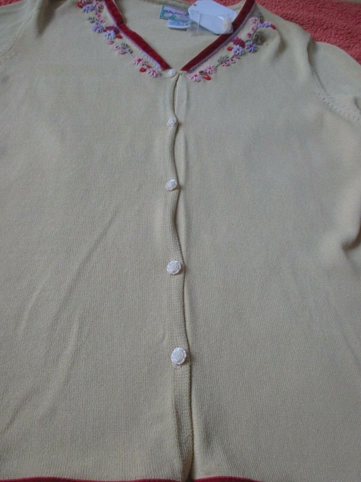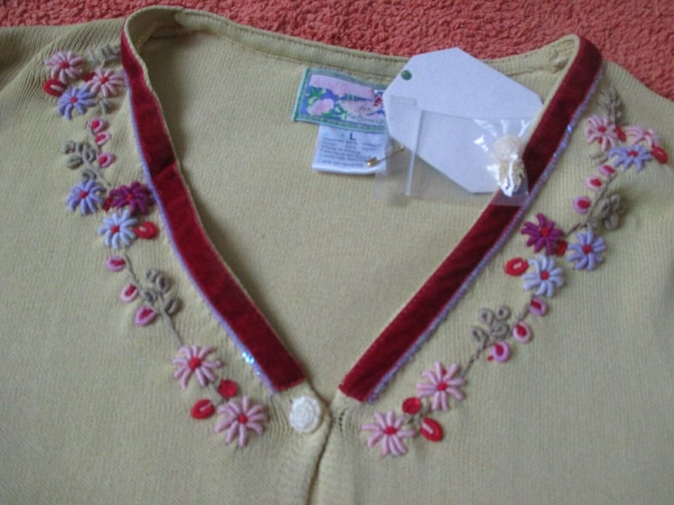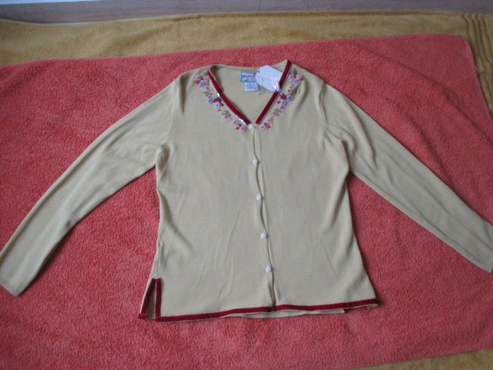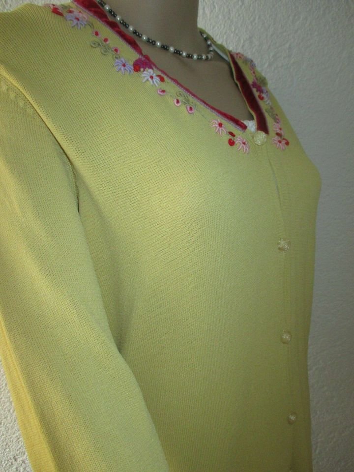 NEU mit ETIKETT * Romantik * Rosen * Blumen * Blüten * Flower * Glitzer * Perlen * Stickerei * Samt * Feinstrickjacke * Cardigan "arcel cornell" Gr. 42- 44, 46/ M- L * sonnen- gelb * bunt *