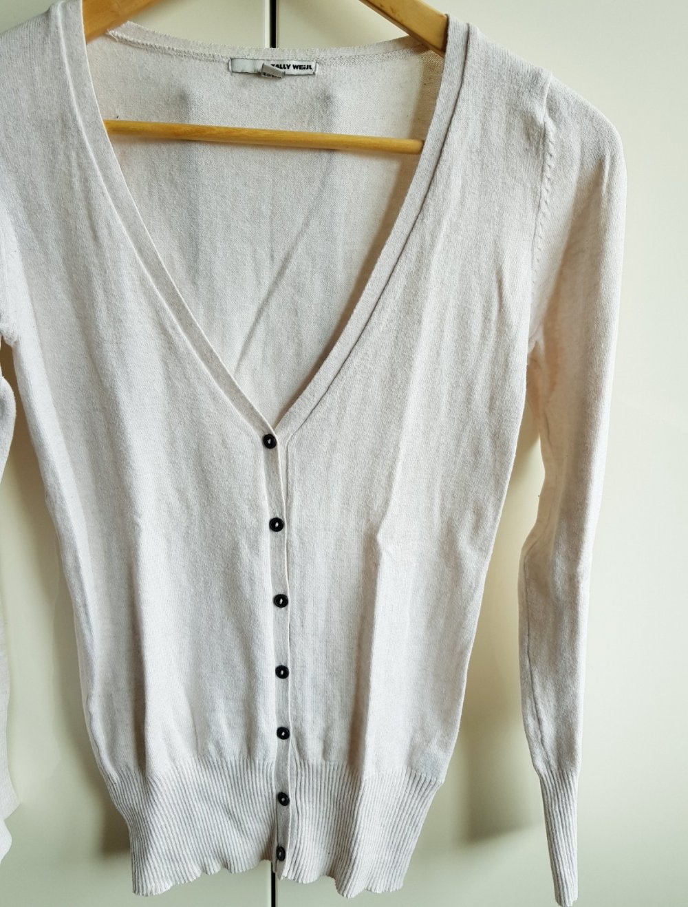 Tally Weijl Basic Strickjacke Strick Cardigan creme meliert Vintage Strickcardigan Baumwolle Nylon