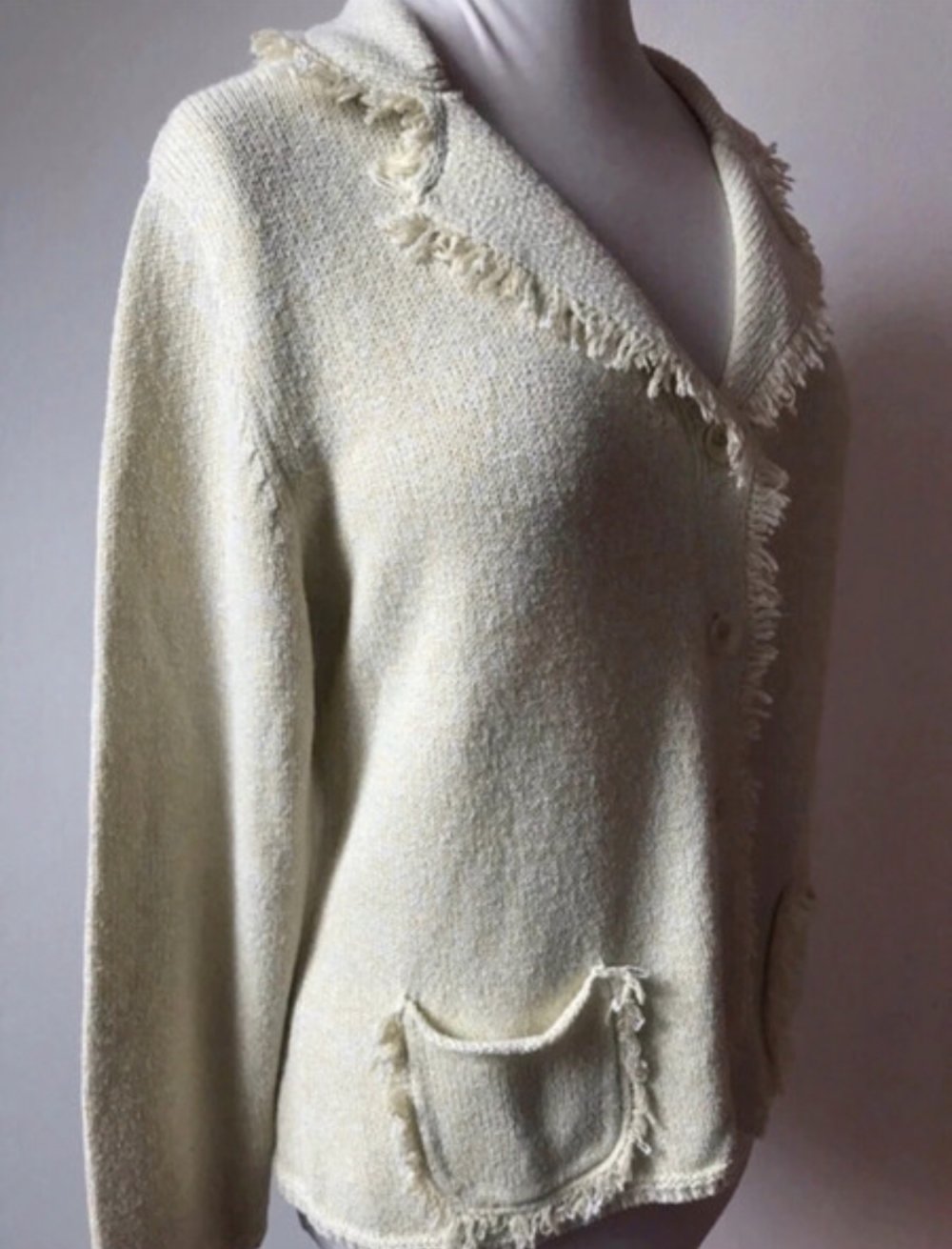 Strick Blazer Fransen Bouclé Wolljacke Mintgruen 48/XXL Westenjacke Cardigan Kragenjacke