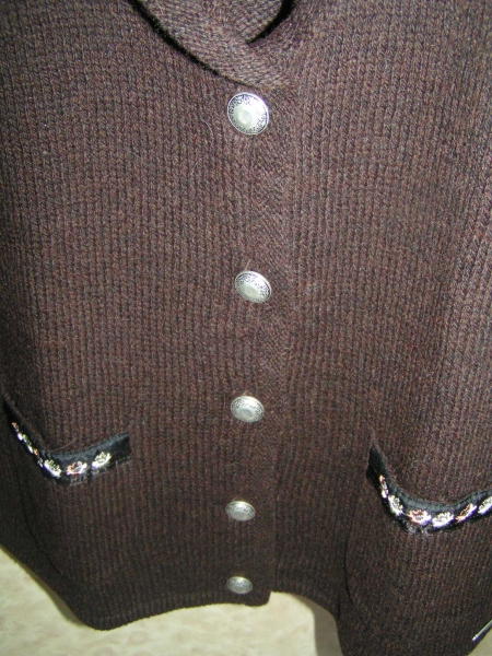 mit schönem V-Ausschnitt und Kragen, tollen verzierten Trachtenknöpfen,2 schönen Taschen mit Blumenverzierung.
