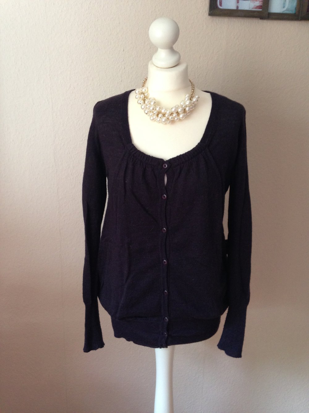 Wenig getragene Strickjacke abzugeben, in super Zustand. In schönen dunkel-lila. Mit zwei Taschen! Weicher Stoff. Aus 25 % Wolle und 15 % Alpaka!