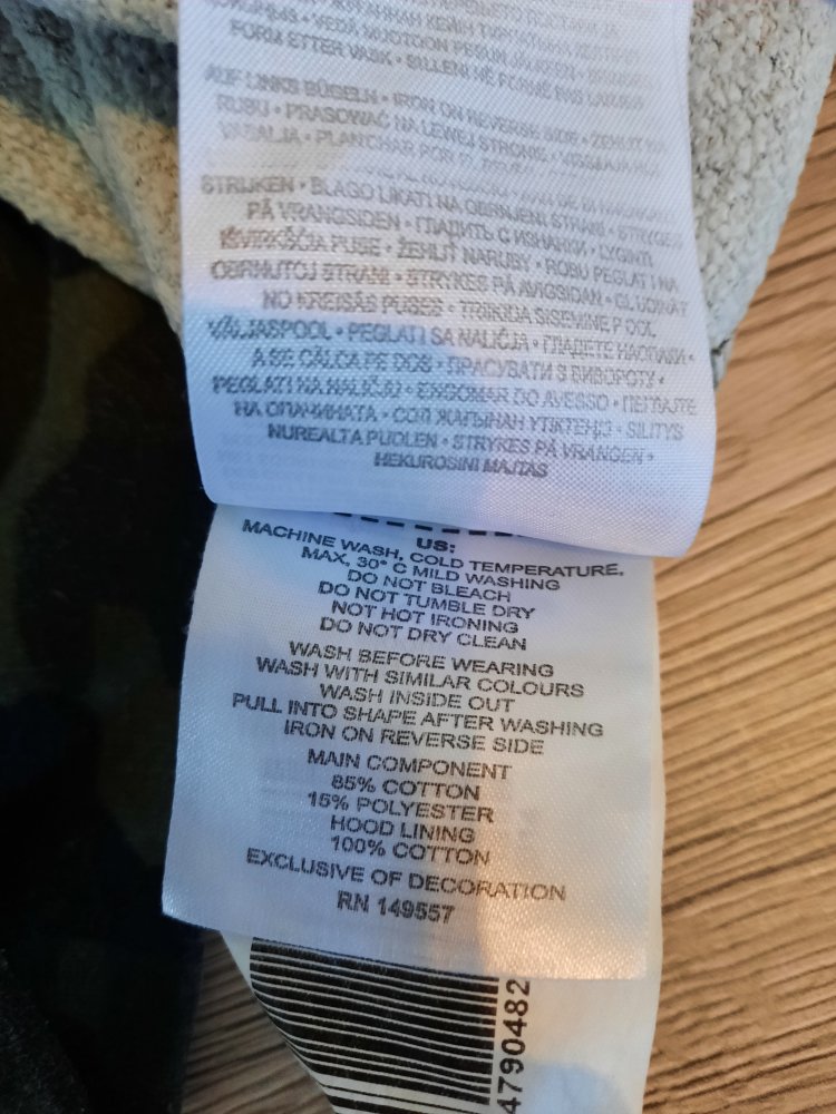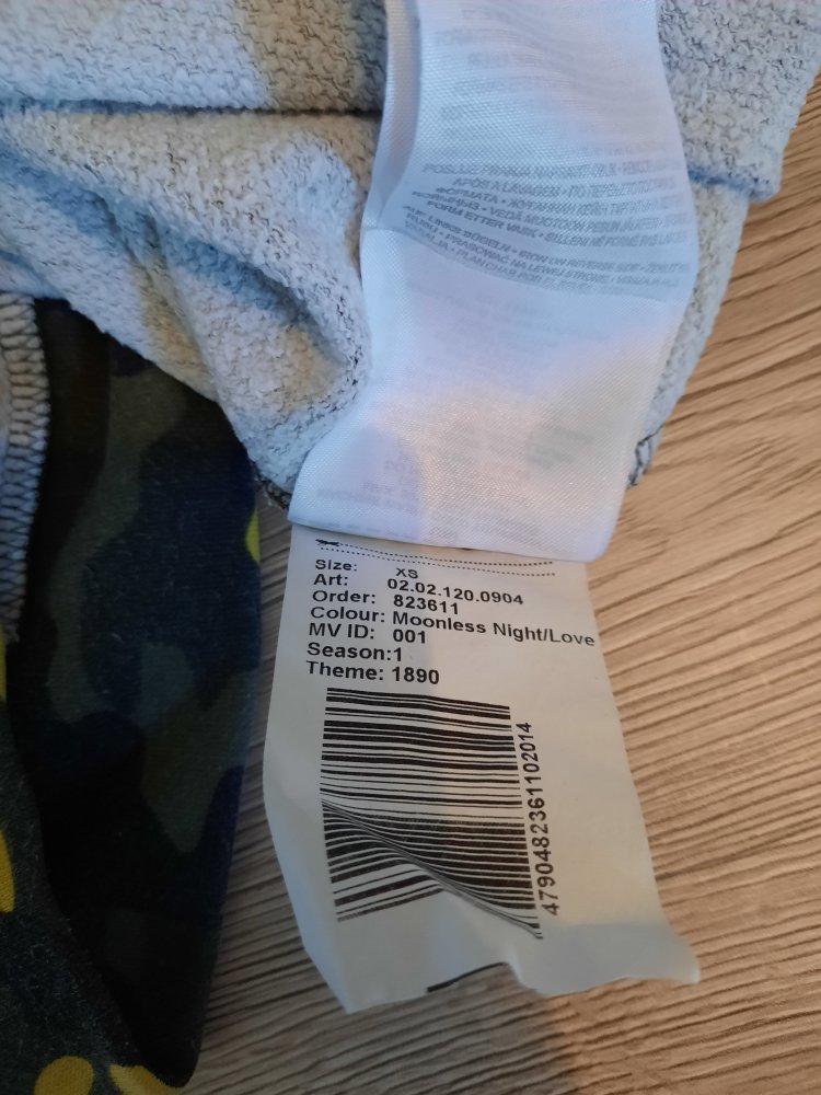 Breite 43,5cm, Brustweite 47cm, Länge 47,5cm (längste Stelle 49cm), Ärmellänge unten 48cm oben 68cm (gemessen ab Kapuze).