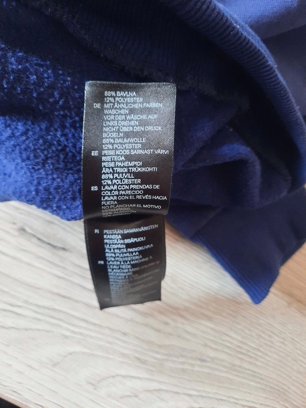 Aufdruck etwas rausgewaschen, in der Kapuze waren Schilder, die rausgeschnitten wurden, siehe Bilder. Länge 53cm, Breite 42,5cm, Brustweite 43,5cm, Ärmellänge unten 44cm, oben 54,5cm.