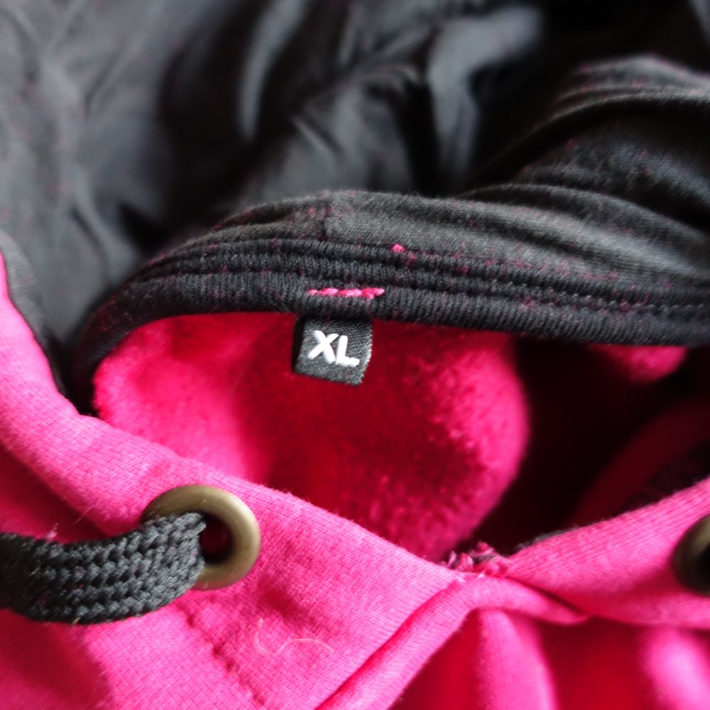 Hoodie, Kapuzen-Sweatshirt, dickes Shirt mit Kapuze, 2 seitliche Eingrifftaschen, Gr. XL, bzw. ca. Gr. 38/40 (ist mit Gr. XL ausgezeichnet, wurde von Person mit S/M getragen oversize, brommbeerfarben bzw. fuchsia, innen angerauht, leider kein Materialschild vorhanden, von Achsel zu Achsel ca. 51 cm, Gesamtlänge ca. 63 cm, Unterarmlänge ca. 52 cm, 17,00 Euro, Versand 4,60 Euro/Hermes (wegen der Dicke),