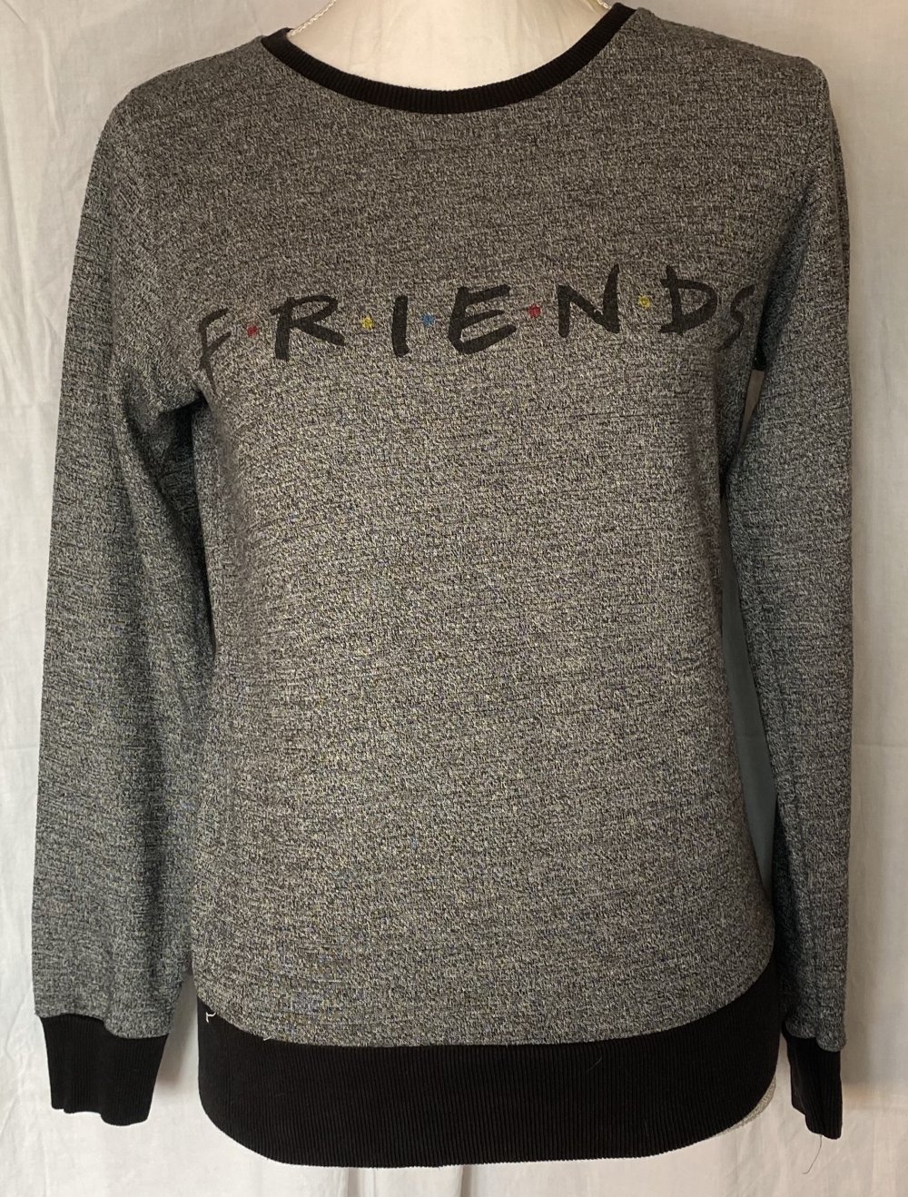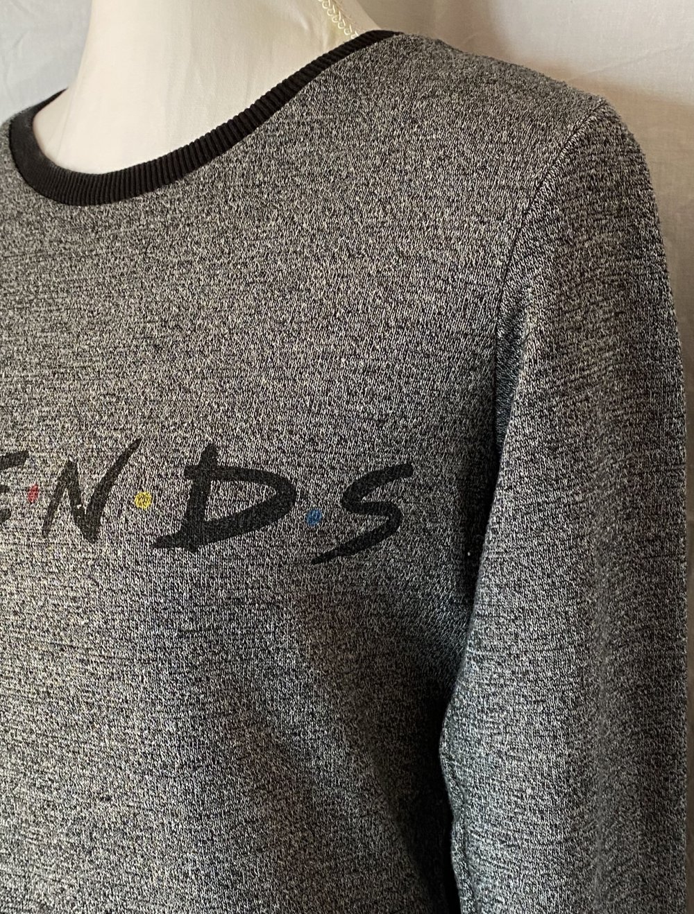 Weiß Schwarz Melierter Sweat Pullover mit Friends Aufdruck Weiß Schwarz Melierter Sweat Pullover mit Friends Aufdruck Weiß Schwarz Melierter Sweat Pullover mit Friends Aufdruck