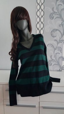 Grün schwarz gestreifter Pullover mit Tasche ausgez. XL auch L 40 42 Punk