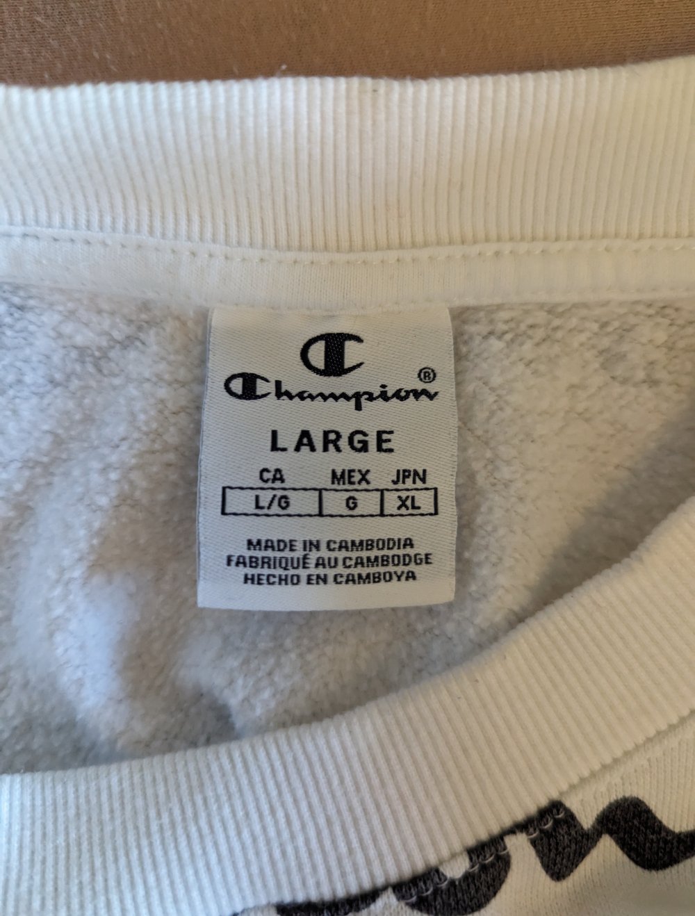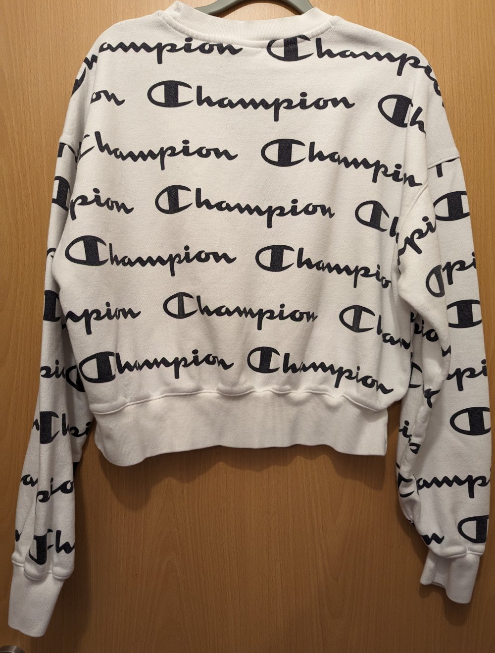 Ich verkaufe dieses weiße Sweatshirt mit schwarzen Logos von Champion, da es mir nicht mehr passt. Ich habe es wenig getragen und es ist in einem guten Zustand. Allerdings fehlt leider das Pflegeetikett.