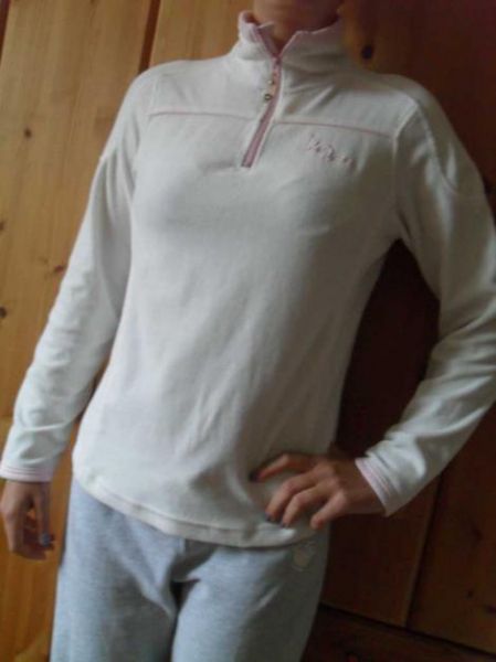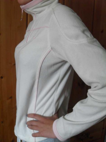 ganz kuscheliger weicher sportlicher Pullover aus feinem Fleece-Material, an Kanten und Kragen abgesetzt mit rosé