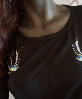 Rockabilly Rockabella Pullover mit Schwalben schwarz M 38 evtl S 36 Neu