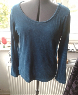 Aus dunkeltürkisem Nicki-Stoff. Besonders schön sind auch die ausgestellten Ärmel, die mich an Hippie/Fairy Mode erinnert!