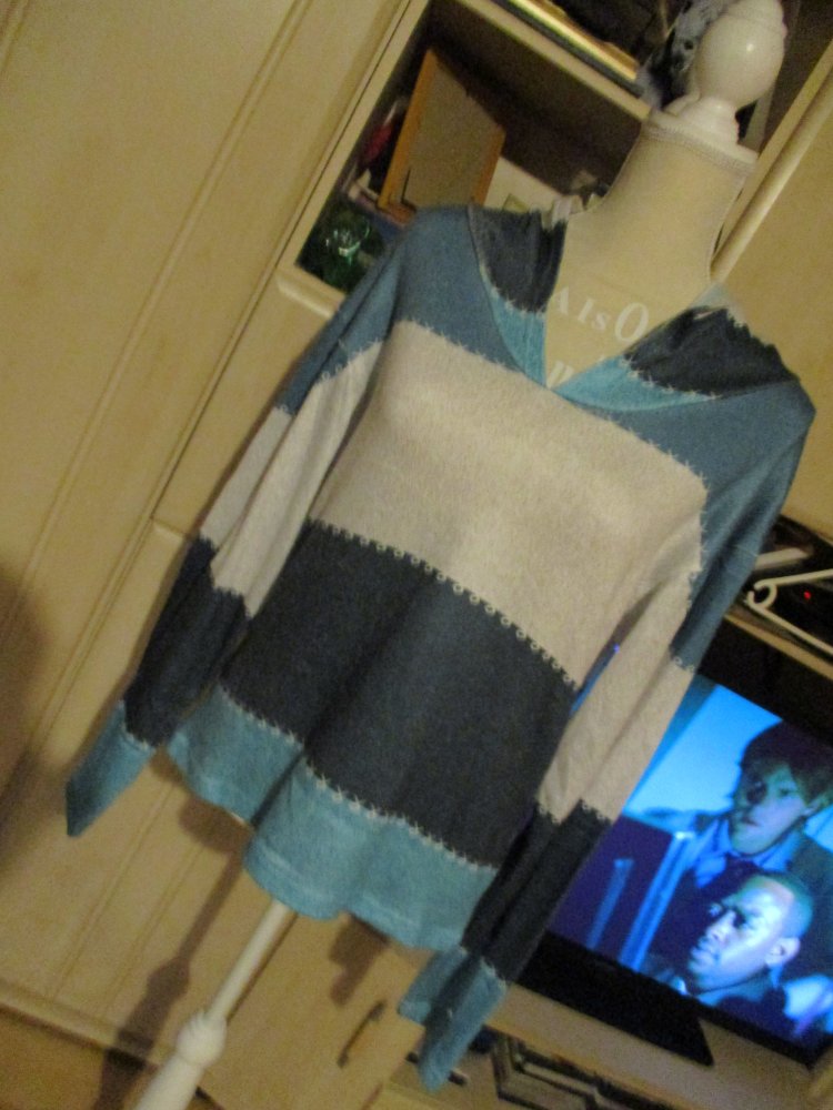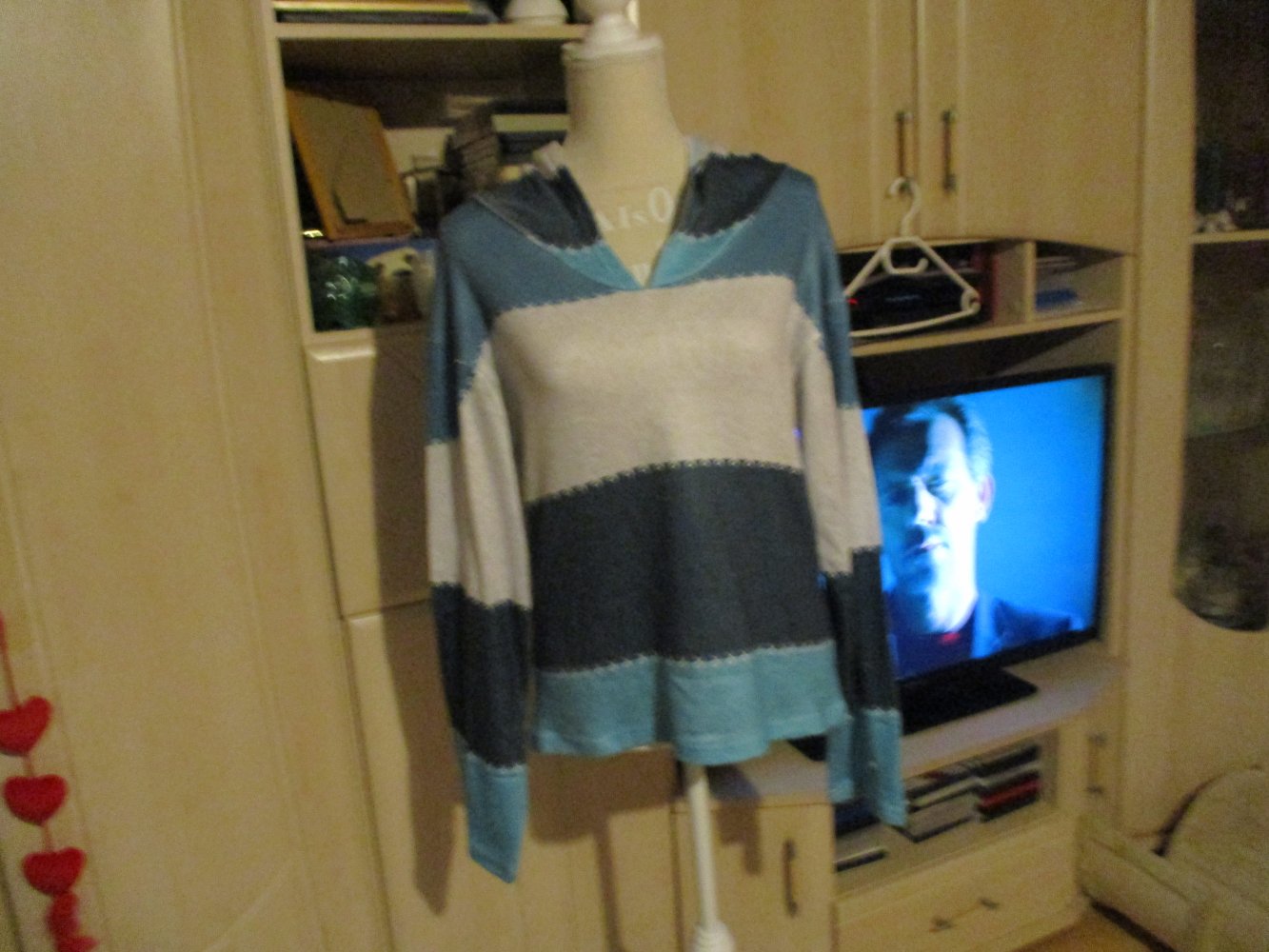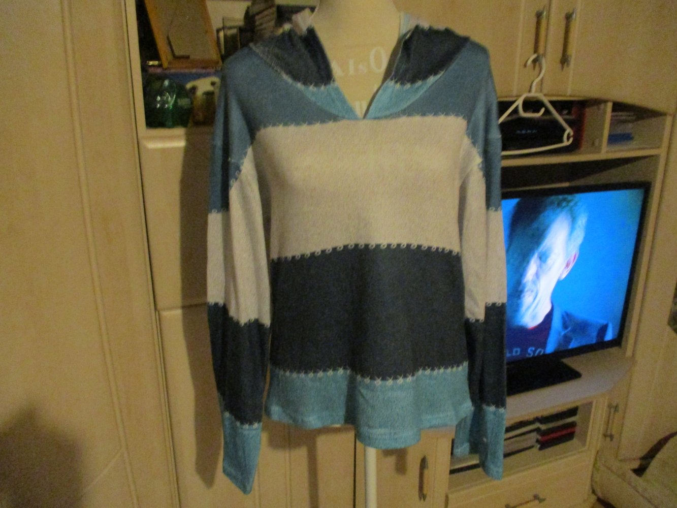 neues dünnes ( sommer ) shirt in gr xl.sehr leichter angenehmer stoff der ganz toll fällt.langärmlig.mit toller kaputze.dunkel-und helltürkis,silber.100% baumwolle.