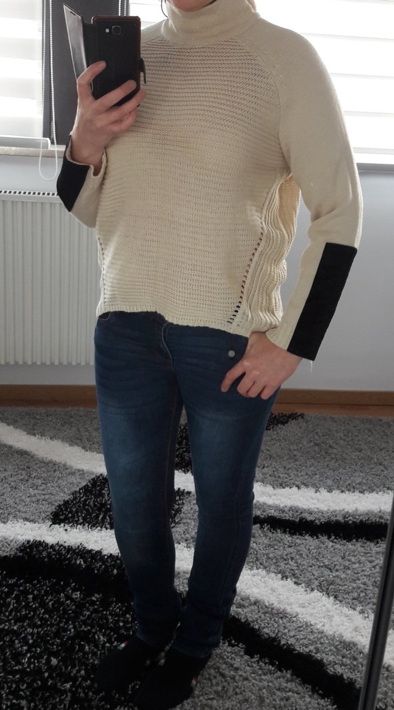 Over Size Pullover von Noisy May by Vero Moda, Gr. L/ 40. 1 x getragen, keine Mängel, in der Farbe: beige mit schwarz. Vorne ist kurzer geschnitten.