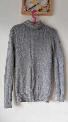 Grauer winter Rollkragen ohne ?rmel von der Tallie bis nach unten wird es breiter. Ist im Stoff Grob senkrecht gestreift