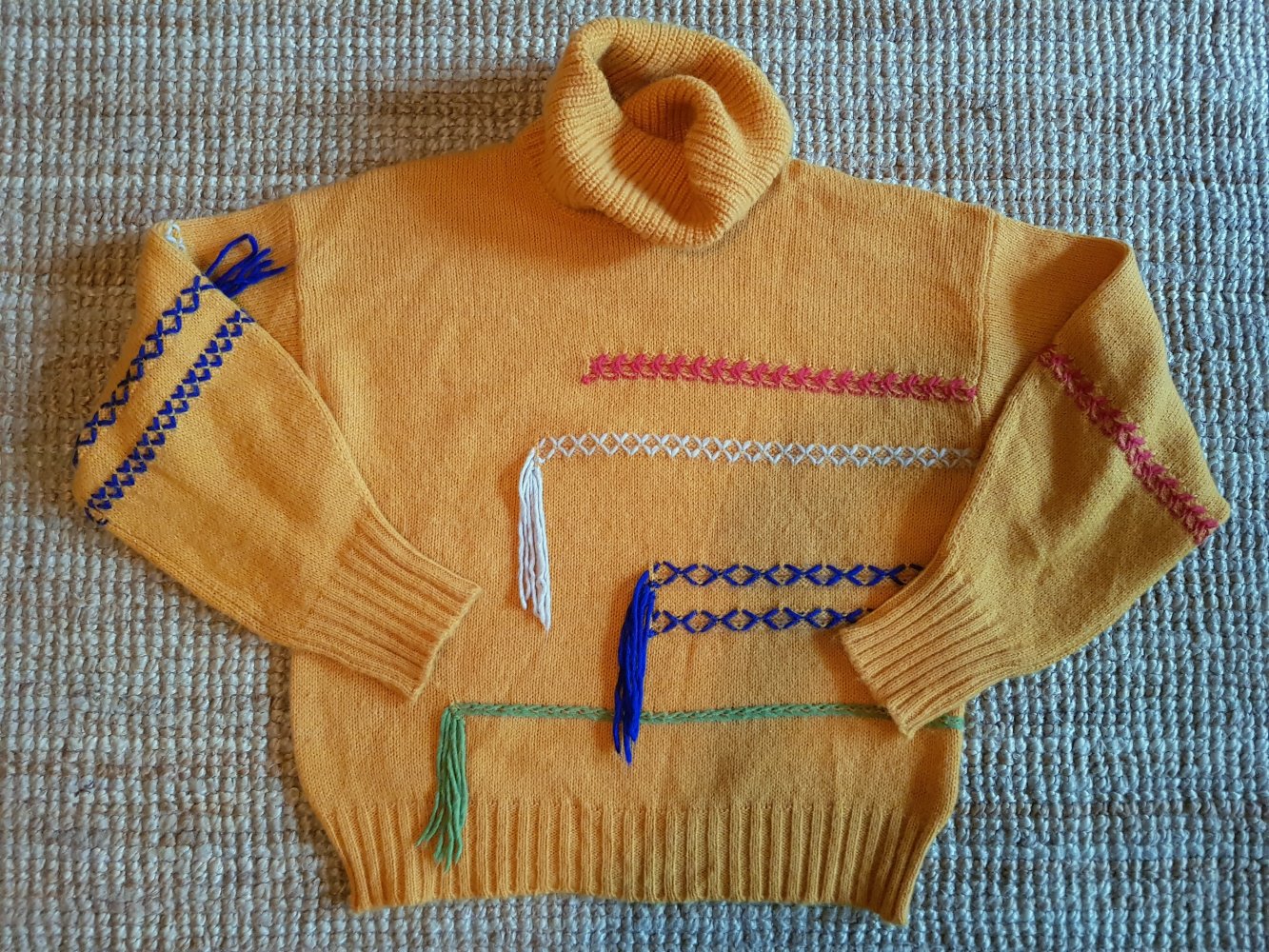 Kuscheliger gelb-oranger Rollkragenpullover von Benetton in M