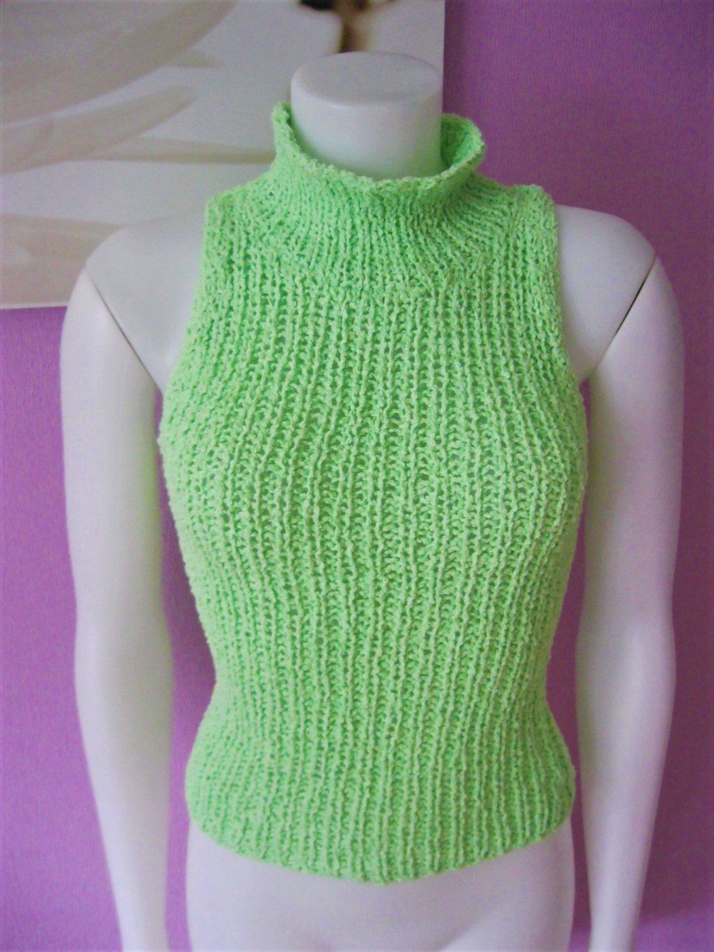 NEU Handmade Stehkragenpulli ärmellos Neongrün Viskose S-M