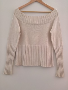 Strickpullover mit Streifen Vintagepulli L 40 42 weiß blau Pullover Pulli