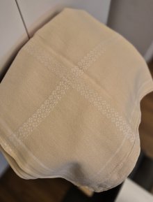Tischdecke alt Stickerei vintage weiß orange74 x 77 cm
