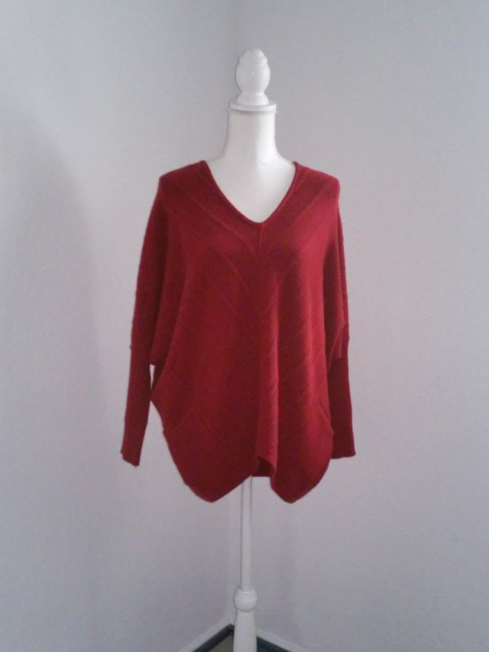 Neu! Oversize Kashmir Pullover Ausschnitt (Fledermaus) Lana-Wolle in Weinrot
