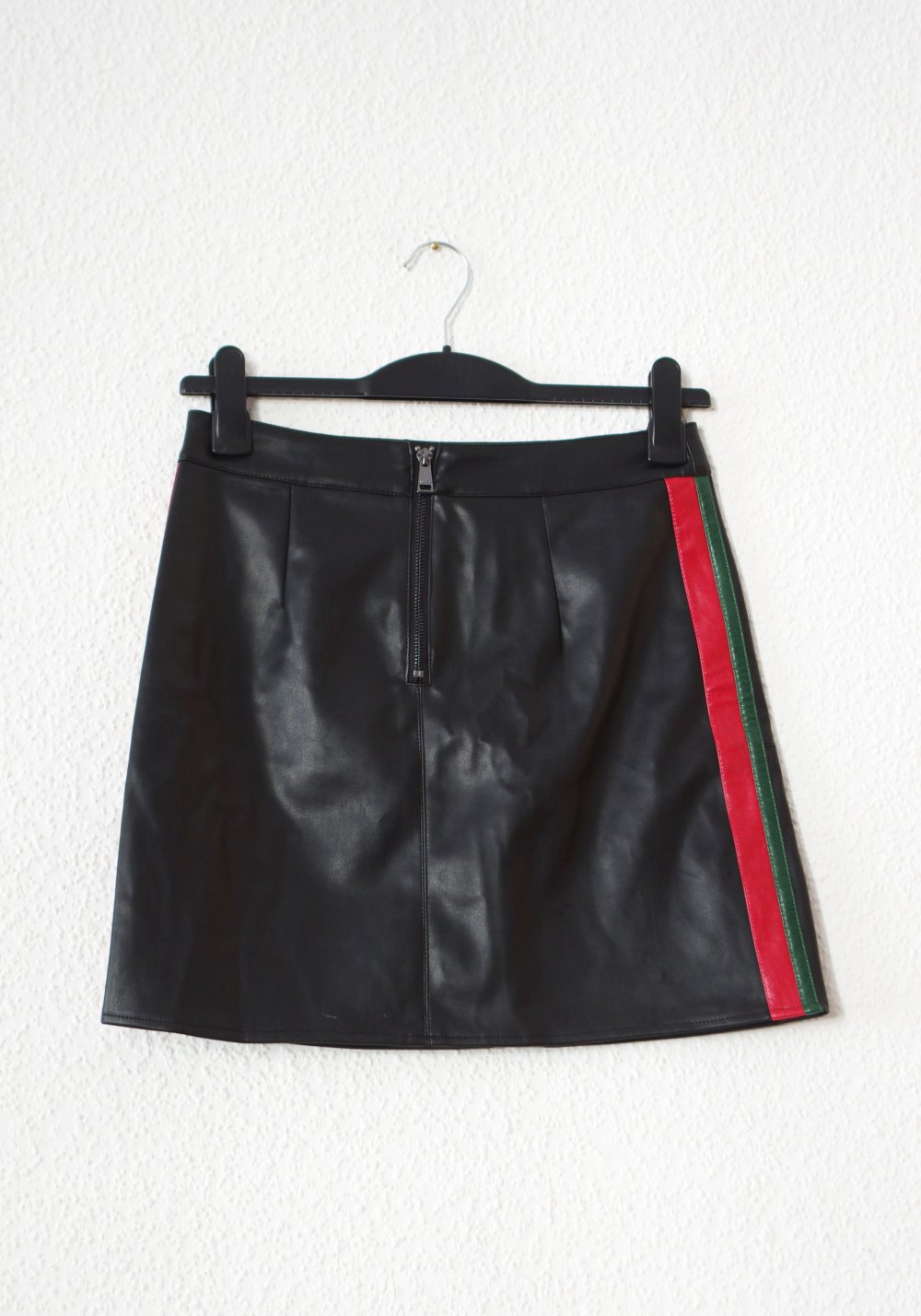Eigenschaften: kurzer eng anliegender Rock, highwaist, insgesamt recht elastisch, leicht ausgestellt, einlagig mit super weicher Innenseite, Reißverschluss hinten, seitlich aufgenähte Kontraststreifen - perfekt für Alltag, Datenight, Party/ Festival/ Rave vor allem zu Bodys und Crop Tops!