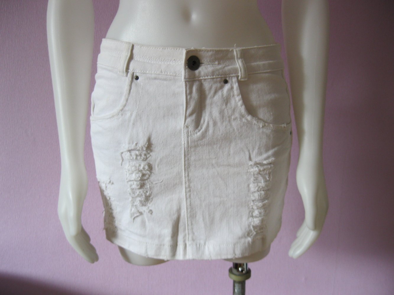 Minirock # Crazy World # Jeans-Rock # Denim # Weiß # Ripped # Baumwolle # 34