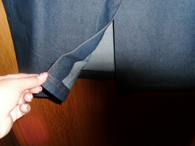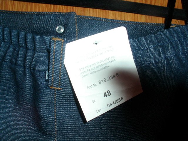 Biete hier einen Jeansrock von Meine Größe in Größe 48 an. Er ist blau ( ein schönes dunkleres Blau) und besteht aus einem Baumwollgemisch mit Elasthan. Im hinteren Bund befindet sich ein Gummizug, Gürtelschlaufen sind auch vorhanden. Der Rock wird vorn mit einem Reißverschluss und einem Knopf geschlossen. Außerdem befinden sich oben zwei Taschen und zusätzlich noch eine seitliche Tasche mittig vom Rock, diese ist mit ein paar Schmucksteinchen versehen. Hinten befindet sich ein kleiner Gehschlitz. Der Rock ist etwas länger geschnitten. Er ist neu, ungetragen und noch mit Etikett versehen.