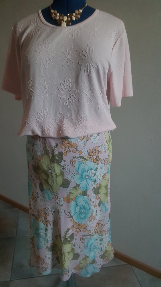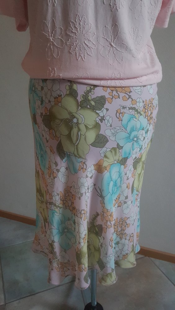 Rock Knielang floral Blumenprint Blüten 38,40,42,44 Gummibund Rosen Tulpenrock Rosè Midi
