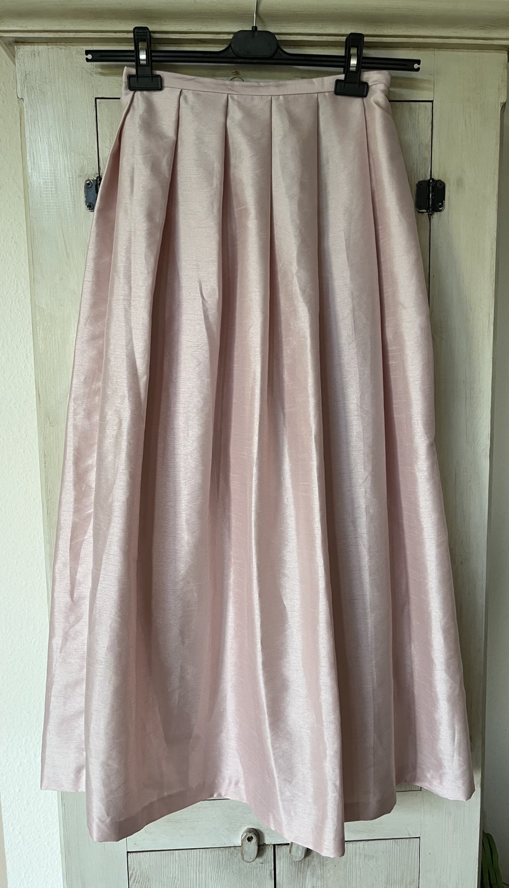 Liz Claiborne First Issue Maxirock Gr.36 Petite Wildseiden Optik Rose, High Waist mit Faltenbund. Der Zustand des Rocks ist sehr gut, nur sieht man je nachdem wie das Licht drauf faellt einige Flecken drauf. Auf Wunsch kann ich gerne versuchen Fotos davon zu machen