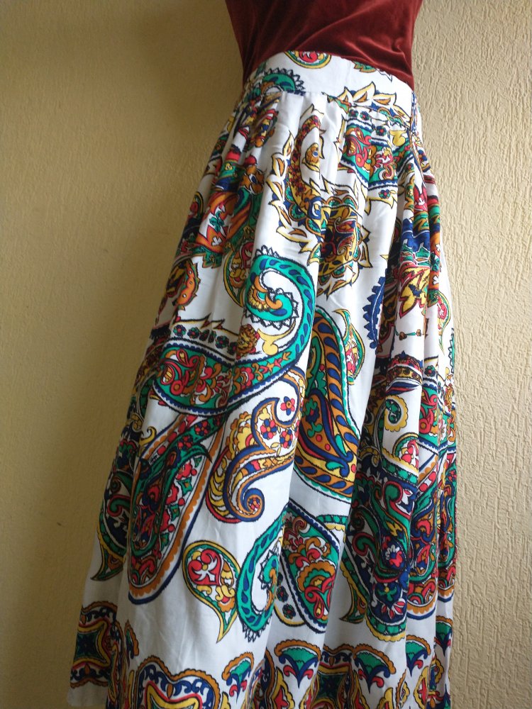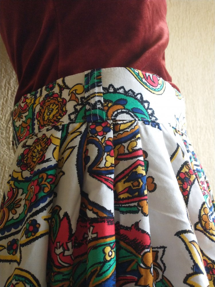 Rock mit Falten im 50er Jahre-Style ist aus eine weicher Viskose gefertigt, hat eine bequeme Passform und einen Reißverschluss. An den Seiten befinden sich jeweils eine versteckte Nahttasche. Da der Rock aus Viskose ist, fällt er fließend und locker herunter.