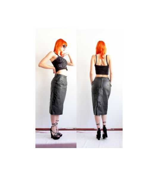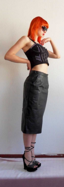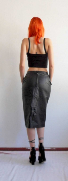 Wadenlanger highwaist vintage K.K. Berlin Lederrock Gr. 42 mit Schleifenverzierung