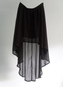 Der Rock besteht aus einem langen, transparenten Oberstoff und einem kurzen Unterrock und kann hinten mit einem Reißverschluss und Häkchen geschlossen werden. Am Bund befinden sich seitlich zwei Gürtelschlaufen, die aber sehr schmal sind un eng anliegen. Der Rock sieht sehr hochwertig aus und kann mit demrichtigen Oberteil auch gut zu gehobenen Anlässen getragen werden. Mir ist er leider zu groß.