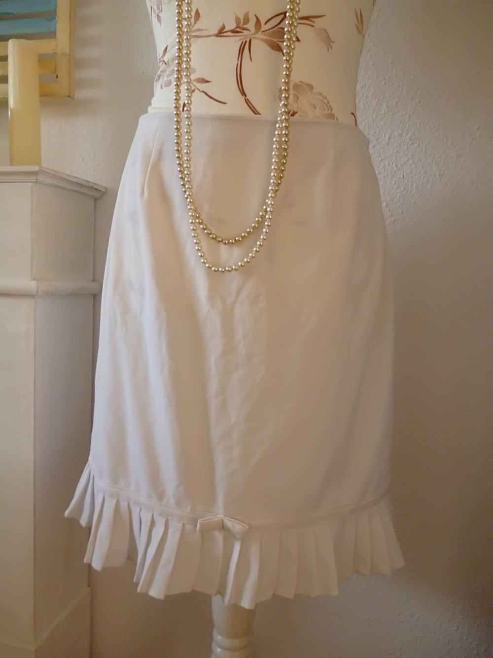 Sehr schöner und verspielter weißer Rock mit Plisseefalten und Schleife am Rocksaum von Larry Levine aus USA , Taillenbund 41cm ,Länge ca.56cm , für Romantikerinnen