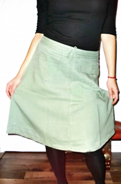 Sehr leichter, bequemer und gut kombinierbarer Rock in einer ganz besonderen Farbe. Am besten kann man die Farbe an dem letzten Foto (Rockbund in Großaufnahme) erkennen.