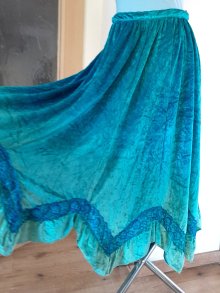 Wunderschöner, blaugrüner Vintage Samtrock mit Spitze, Gr.XS