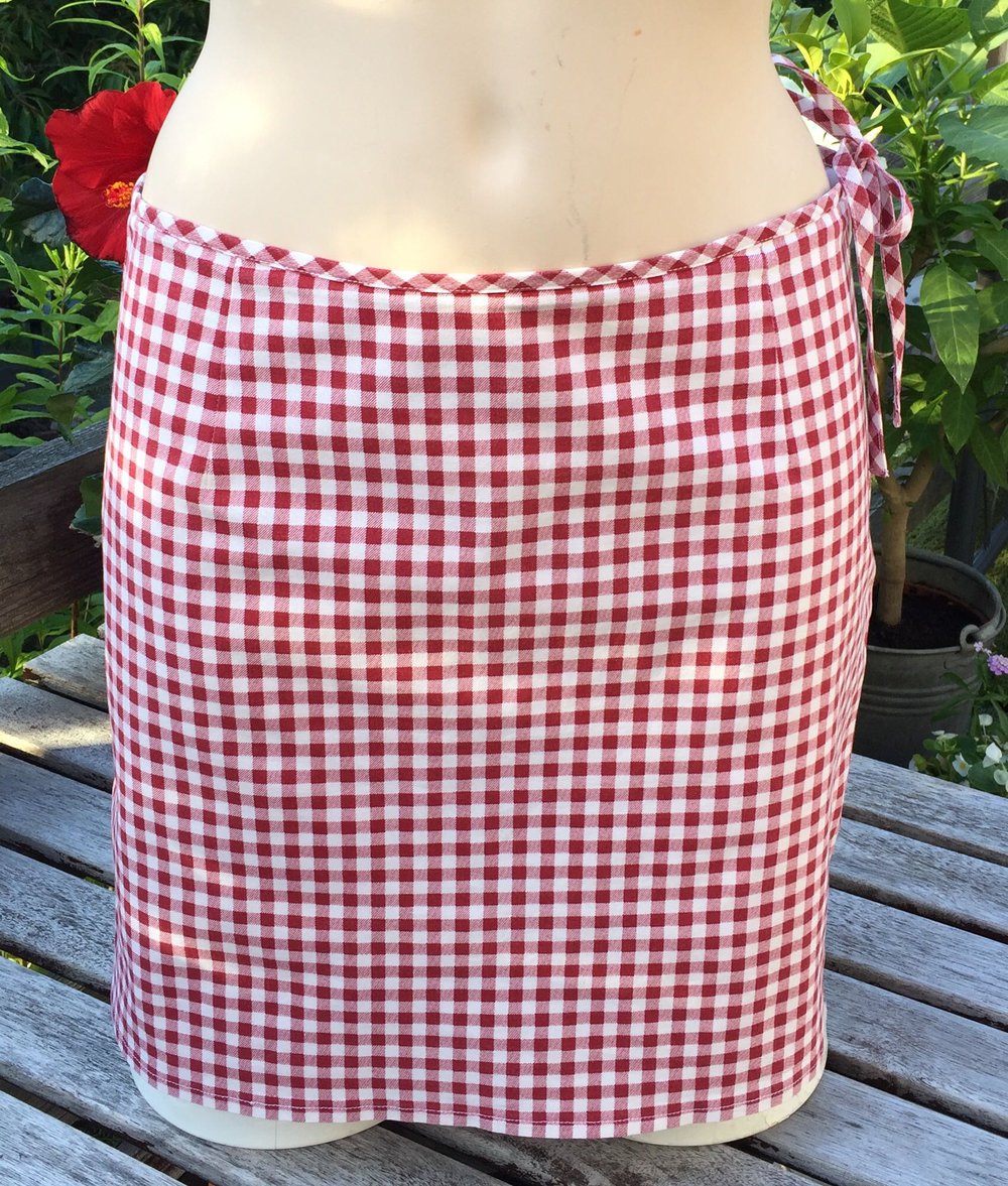 Er wird linksseitig mit Reißverschluss geschlossen und hat am Bund eine Zierschleife.