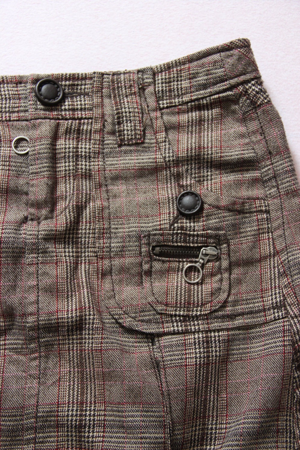 Hat ein bisschen was von Schuluniform wegen der Falten und des karierten Musters. Wird mit Knopf und Reißverschluss vorn geschlossen. Man kann auch einen Gürtel dazu tragen, denn es gitb Laschen dafür.