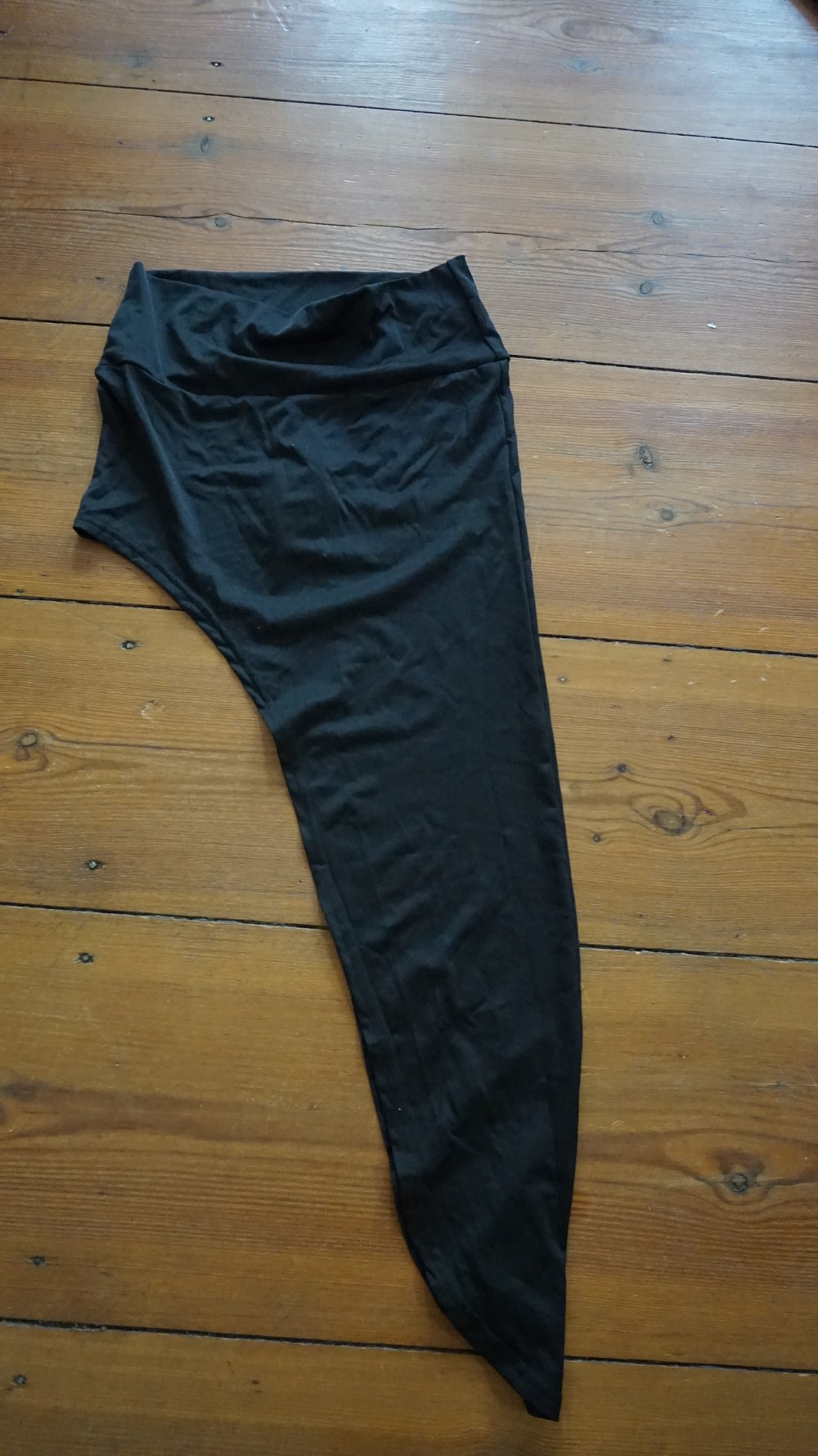 Schwarzer, a-symmetrischer Rock. Lässt sich auf verschiedene Arten tragen. Sehr dehnbarer Stoff.