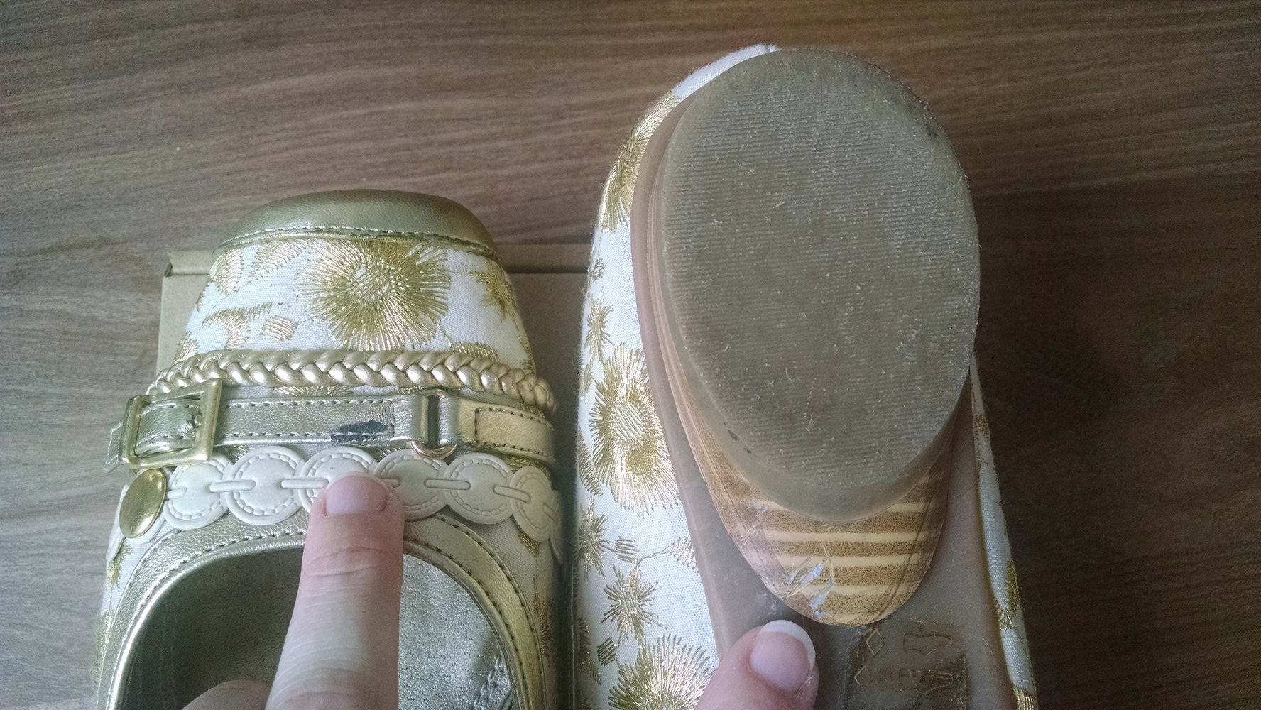 An der Schnalle vorn und am Absatz unten gibt es Abnutzungsspuren (siehe Foto).