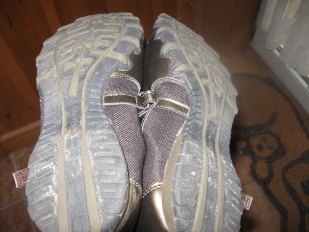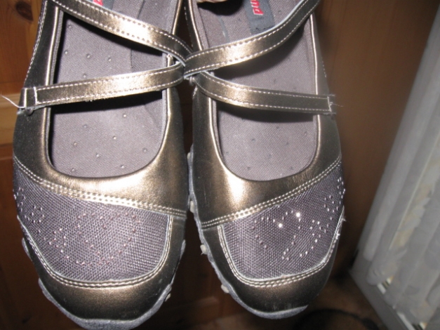 Diese Ballerinas sind selten im Einsatz gewesen. Die Riemchen gehen mit einem Klettverschluß zu schließen. ch schäte sie in der Gr.39/40. Der genaue Farbton ist ein Braun / Bronze.