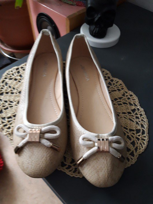 Beigefarbene Ballerinas mit Schleife
