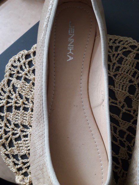 Ballerinas in Schlangenlederoptik mit goldenen Elementen an ‚Schnürsenkel/Schleife‘. Größe entspricht der Realität ;)