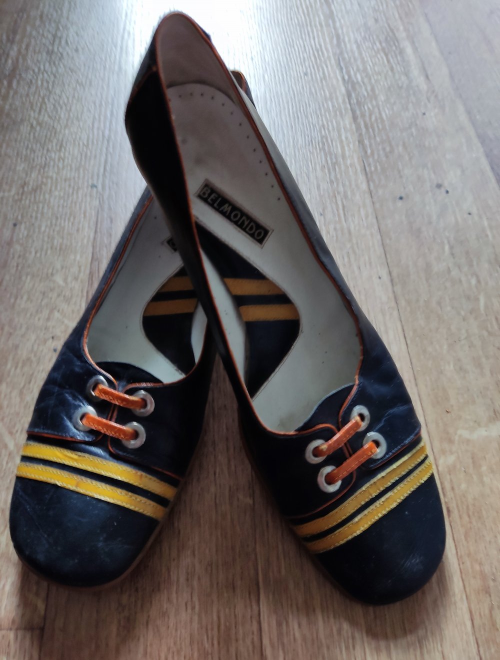 Chice dreifarbige Lederpumpe die wie eine Mischung von Ballerina und Pumps wirken, aus feinem Glattleder ...Vintage !